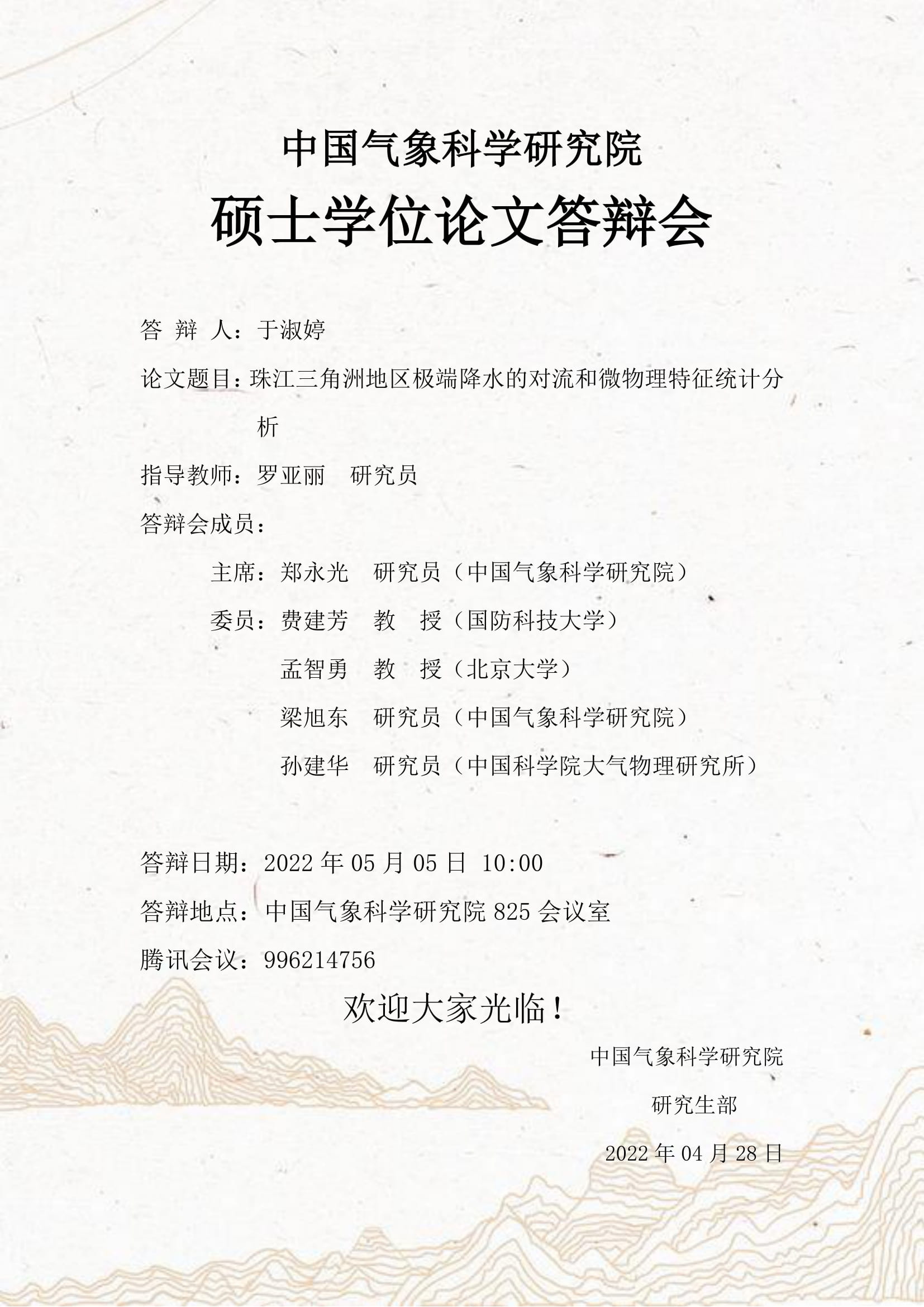 中国气象科学研究院硕士学位论文答辩会--于淑婷