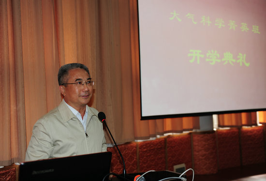 校长王焰新在讲话中代表学校感谢中国气象局、中国科学院大气物理研究所、中国气象科学研究院、湖北省气象局等对大气科学建设的大力支持,向首届大气科学菁英班的33名同学表示诚挚的祝贺。他简要回顾了学校与中国气象局签署战略合作协议的过程。并与同学们分享了他亲身经历的两个小故事,以此强调大气科学的重要地位和对人类健康的重要作用。王校长要求,同学们要心向阳光、行向远方;要珍惜来自全国顶尖大气科学科研前沿教师的教诲,去世界级的大气科学研究机构工作,为今后的成长成才打好基础;要努力追逐大气科学的世界前沿,成为具有国际思维的跨学科人才。
