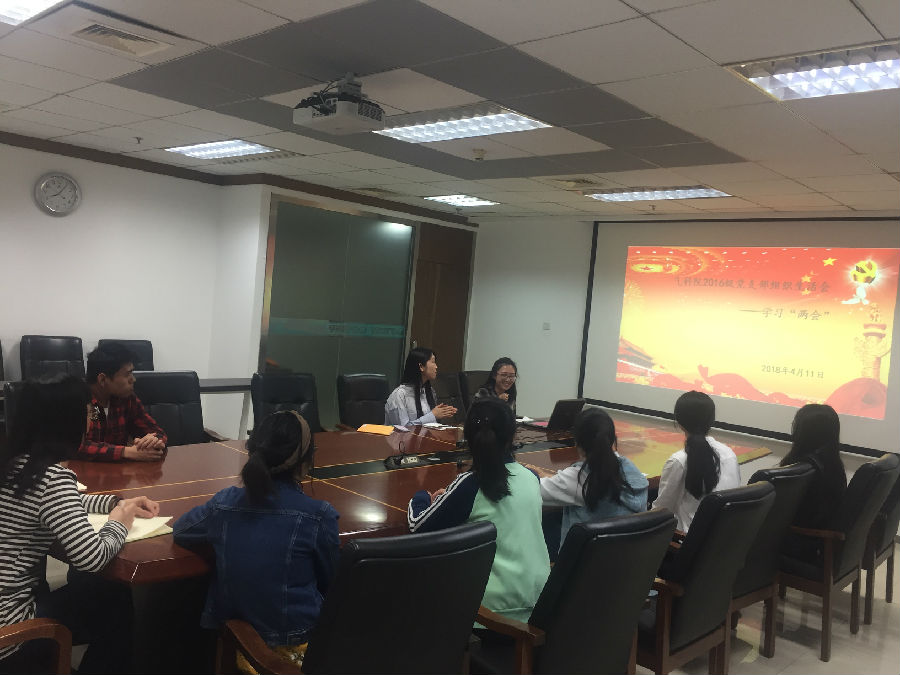 为深入学习贯彻全国两会精神,了解两会热点内容并认真阅读国务院政府工作报告,2018年4月11日晚8:00,气科院2016级党支部在909-1会议室召开了以“聚焦两会”为主题的组织生活会,共同学习今年两会有关知识。