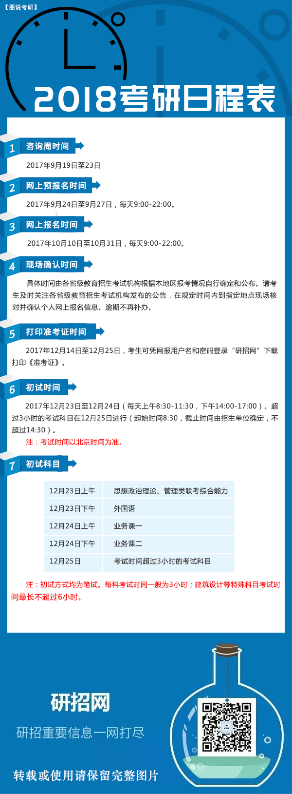 除了初试时间,2018考研还有哪些重要日程呢?马上看图了解。